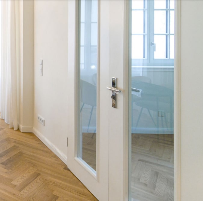 Bodentiefe Sprossenfenster und Echtholz-Fischgrätparkettböden schaffen ein zeitgenössisches Ambiente mit klassischen Akzenten. Doch die Ausstattung des CASON geht über das auf den ersten Blick Sichtbare hinaus. So verläuft unter dem Parkett eine Fußbodenheizung, die in den kühlen Monaten für ein besonders behagliches Wohnklima sorgt. Dazu tragen auch die Fenster bei – genauer: ihr Isolierglas. Es hält nicht nur Kälte und Hitze ab, sondern auch die wenigen Straßengeräusche, die den abgeschirmt liegenden Innenhof noch erreichen. So finden Sie zu Hause stets wohltuende Ruhe.
